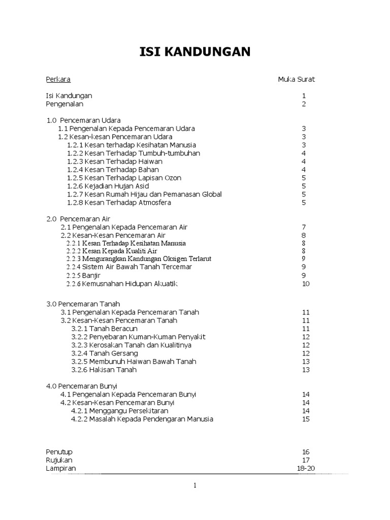Kesan Pencemaran Alam Sekitar Terhadap Dunia Hari Ini from imgv2-1-f.scribdassets.com Pencemaran air adalah peristiwa masuknya zat atau komponen lain ke dalam perairan. Pencemaran air yang berlaku memberi kesan bukan sahaja akan dialami oleh manusia bahkan turut memberi kesan kepada hidupan yang lain. Air merupakan antara isu yang selalu meniti dari bibir ke bibir anggota masyarakat di negara kita. Contohnya, sodium memberi implikasi kepada jantung, manakala merkuri dan plumbum. Pencemaran air adalah suatu perubahan keadaan di suatu tempat penampungan air seperti danau, sungai, lautan dan air tanah akibat aktivitas manusia. Pencemaran air merupakan masalah lingkungan yang serius karena dampaknya terhadap manusia. Pencemaran air memberikan kesan kepada penduduk di alam ini. Akhirnya pencemaran air memberi kesan kepada kualiti air.